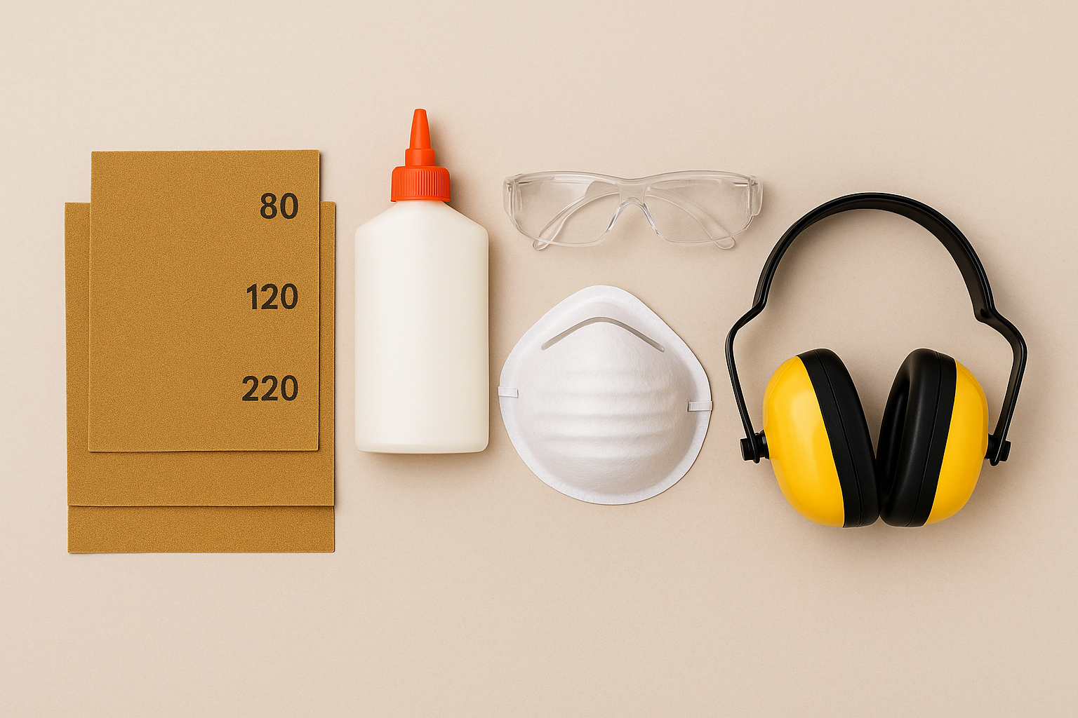 - Sandpaper (80, 120, 220 grit)
